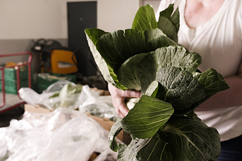 På vores fælleslager på Hotel- & Resturantskolen i Valby kommer fødevarerne, hvor fælleskoordinatoren Jonathan og fælleslagerteamet står klar til at pakke grønsager, frugt m.m. så de kan komme ud til lokalafdelingerne og derefter blive kørt ud til afdelingerne af chaufførerne.