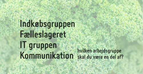 Vil du gerne have større indflydelse på, hvad der kommer i din ugentlige grøntsagspose? Elsker du KBHFF varer og vil gerne bidrage til fællesskabets mål om at have friske, lokalt producerede økologiske og biodynamiske produkter hver uge? Så bliv en del af indkøbsgruppen.